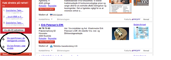 Til venstre på resultatsiden findes en grå boks. Her kan du trykke på ”Vis kun firmaer i søgt område”, og herefter vil resultatlisten kun vise lokale virksomheder.